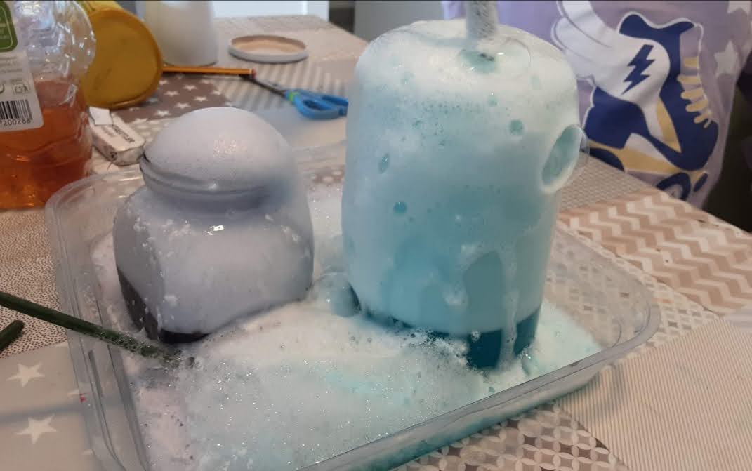 Procediment: Poseu l’aigua a la safata i tireu un raig de sabó, una mica de glicerina i ja podeu començar a remenar i experimentar amb els estris. Si voleu hi podeu afegir colorant perquè siguin de colors. I un cop fet, ja podeu provar de fer bombolles!!!