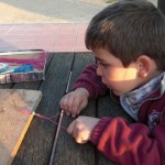 SILVIA PRAT PRAT | 22 març 2012I entre ruixat i ruixat, hem aprofitat per començar a fer les portades dels àlbums que ens emportarem per Setmana Santa. Per conèixer el resultat final encara us haureu d’esperar una mica, però us deixem un petit tast dels preparatius, i mai més ben dit, perquè hem pintat amb xocolata desfeta! I per fer una primera neteja dels dits, res millor que llepar-los!! I és que la xocolata és mooooooolt bona!!