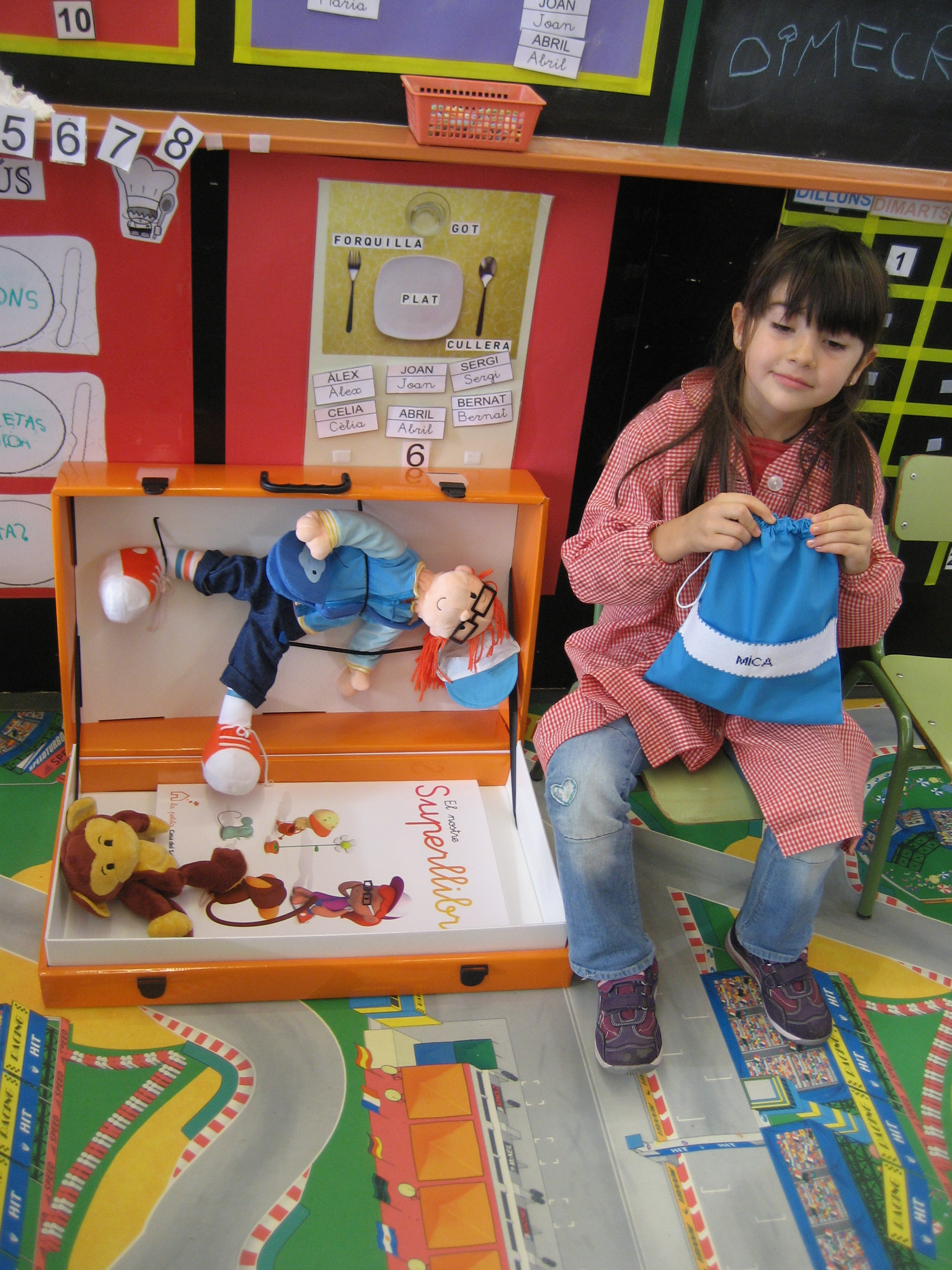 Com ja veureu els vostres fills/es arribaran a casa amb una maleta gegant on trobareu els nostres amics: La Mica i la Mona, juntament amb el Superllibre.