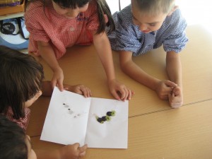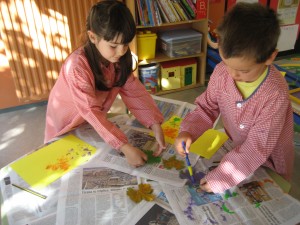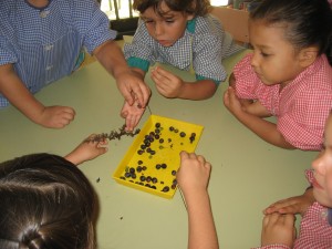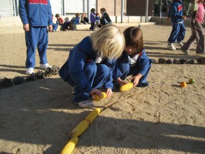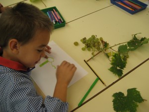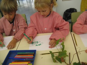 Nosaltres a la classe hem manipulat, experimentat, tastat i gaudit de tots aquests fruits: Raïms, pinyes, castanyes, carbasses, moniatos, codonys, caquis, atmelles, nous, figues, avellanes, fulles, etc… La veritat que entre tots hem fet una bona feina.