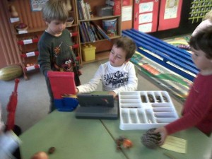 Aprofitant tots els fruits de la tardor que heu portat a l’escola, hem montat el Racó del super a la classe. Comprem i venem utilitzant: Llistes de compra, les monedes i billets d’euro que tenim, la balança, etc. D‘aquesta manera aprenem conceptes matemàtics sense adonar-nos… Què divertit!!