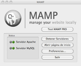 • Los servicios de Apache y Mysql están activos . Por defecto MAMP nos coloca los puertos 8888 y 8889 para Apache y Mysql. Si os dieran problemas estos puertos probar de utilizar el 80 y el 3306 desde el botón preferencias de la pantalla anterior.