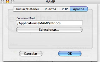 • Ahora debemos indicar-le a Apache donde se encuentra nuestro directorio de Drupal. Para ello en la ventana preferéncias de MAMP , le daremos a la pestaña Apache y seleccionaremos la ruta de nuestra instalación (Aplicaciones/MAMP/htdocs/drupal7 por ejemplo)