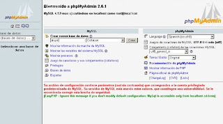 • Previamente debemos crear la base de datos donde se guardará toda la información de Drupal. Accedemos al PhpMyAdmin con  http://localhost/phpMyAdmin y veremos que en la parte central nos permite crear una base de datos.
