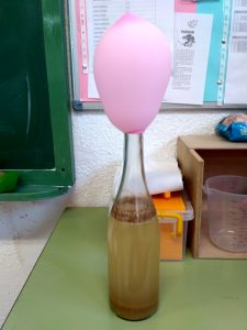 Ens han explicat que hi ha tres requisits per tal que el most es converteixi en vi: el silenci, la foscor i un recipient idoni per a tal fi. A la classe tenim l’ampolla amb el most, ens van recomanar que poséssim un globus a la boca de l’ampolla. Aquest, després de 24 hores s’ha inflat perquè al fermentar es desprèn un gas. Segurament quan el destapem i l’olorem s’assemblarà més a vinagre ja que ha estat en un ambient sorollós, il·luminat i dins una ampolla, ens al contrari del que necessita. Però tot i no aconseguir un vi, hem aprés molt al respecte!