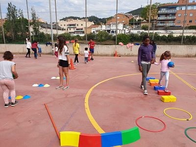 Els alumnes de Cicle Superior van preparar una gimcana per als nens i nenes d’Educació Infantil amb cinc propostes de joc: punteria, cordes, ball, circuit i guixos. Ens ho vam passar molt bé!