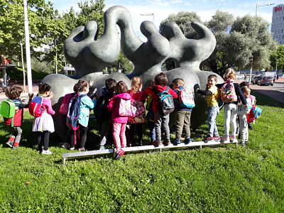 Els nens i nenes de P4 hem anat a veure les Escultures (Olympia, La Sardana i Literatura), que estan al voltant de la nostra escola. Hem pogut observar el material del qual estan fetes, la seva grandària, forma, color… i l’artista que les ha fet.