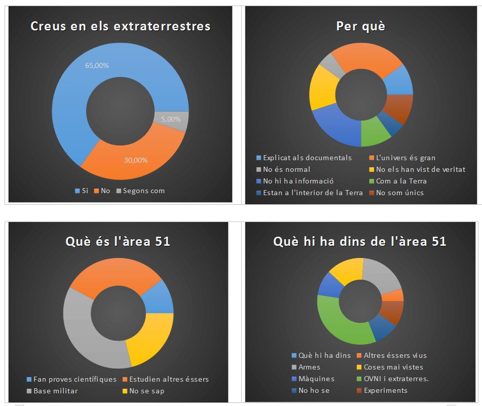 A través de les entrevistes hem vist que la gent que ha contestat positivament ens han dit que creuen que no som els únics que hi ha a l’Univers i que hi han més planetes que tenen vida encara que no els coneguem.
