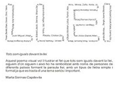 Arts visuals Poesia Visual Justícia de Toni Prat Reflexió: Quin sentit tenen les dues poesies visuals dins al marc de l’article? Poesia visual i Drets Humans