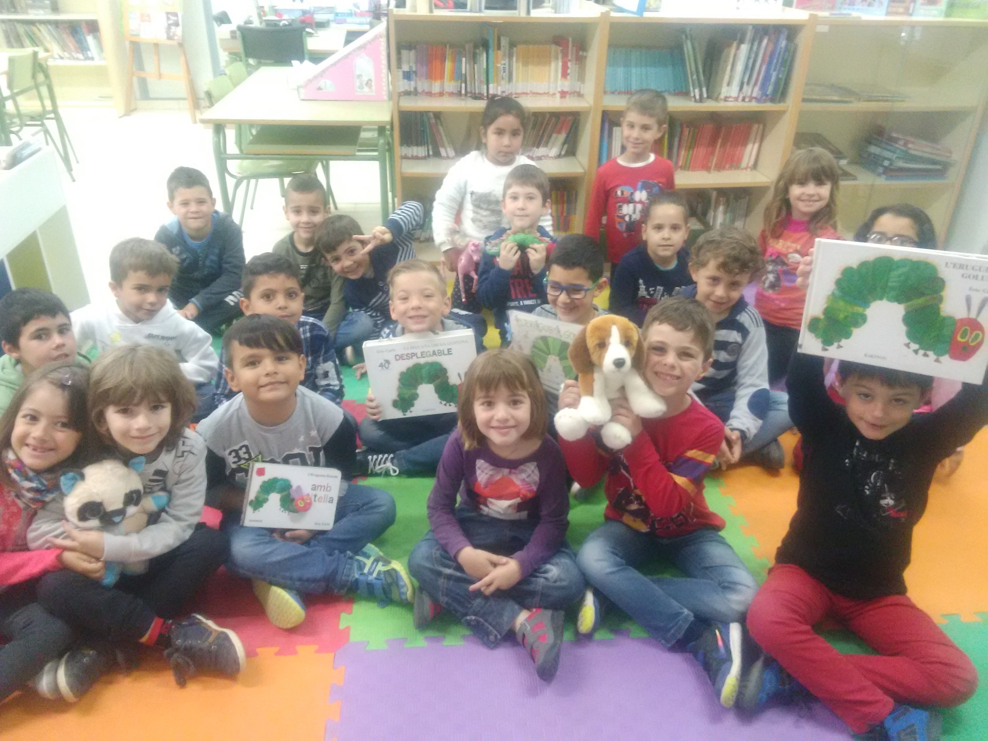 Avui, a la biblioteca hem anat a conéixer la història de l’eruga que tot s’ho volia menjar. Per fer-ho hem investigat i trobat diferents formats de llibre. La Vanesa ens ha deixat el seu titella i la Laia ha portat de casa seva dos llibres. Hem gaudit un munt.