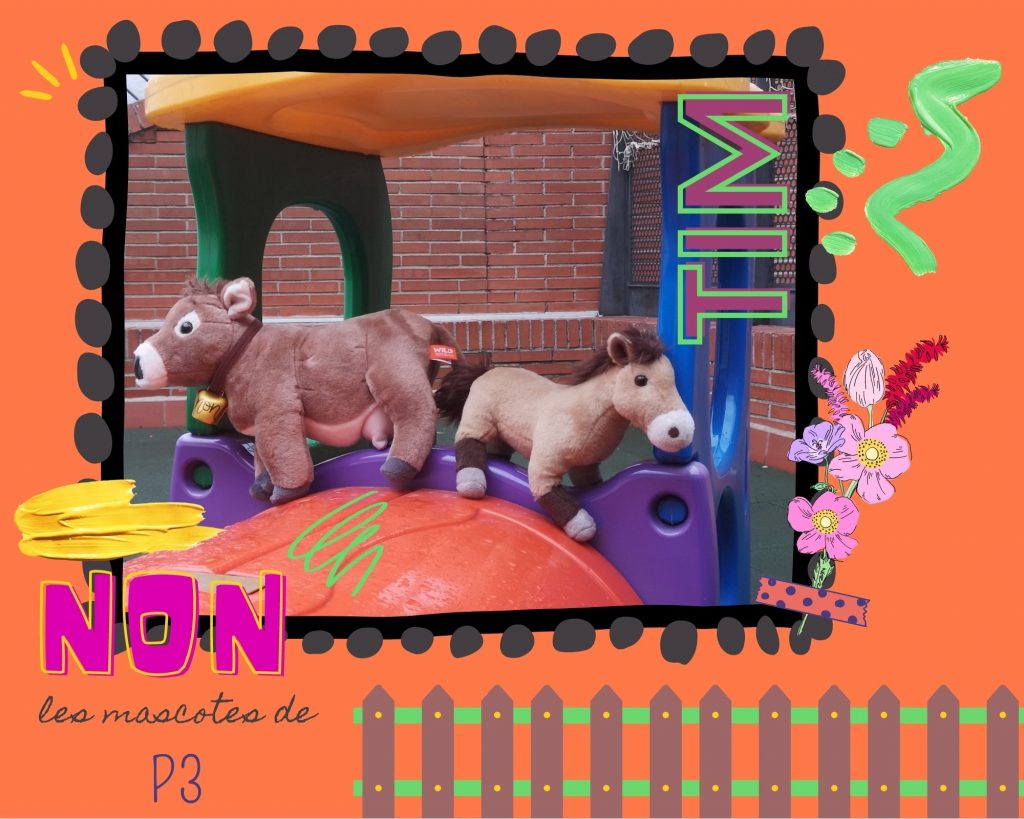 Un cop van arribar a l’escola, cada classe va escollir el nom per a la seva mascota. A P3 tenim la Vaca Non i el cavall Tim, a P4 el cavallet de mar Lola i la tortuga marina Marshall Marcelina i a P5 l’eriçó Pinchitos i l’àguila Fineta.