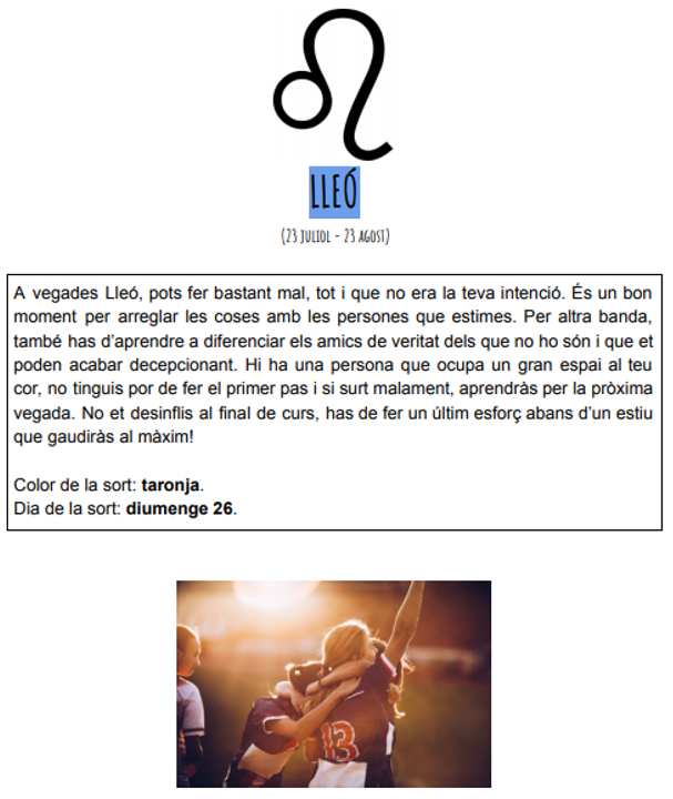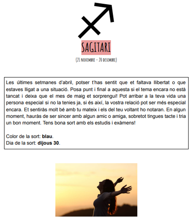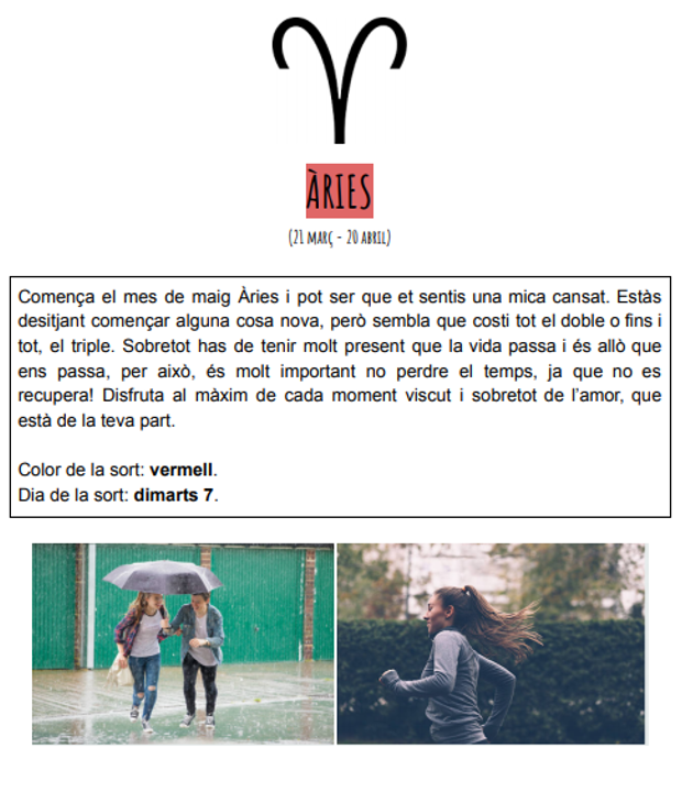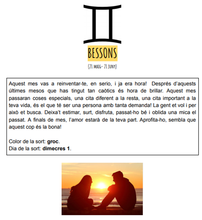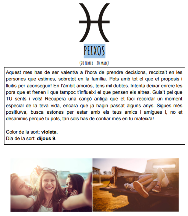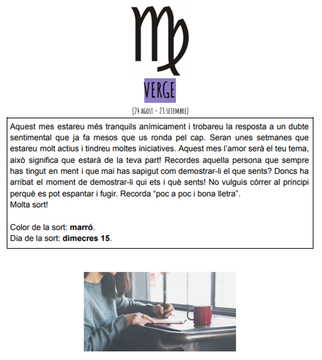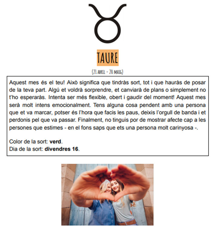 Esperem que us agradi i que l’horòscop us acompanyi en la vostra salut!