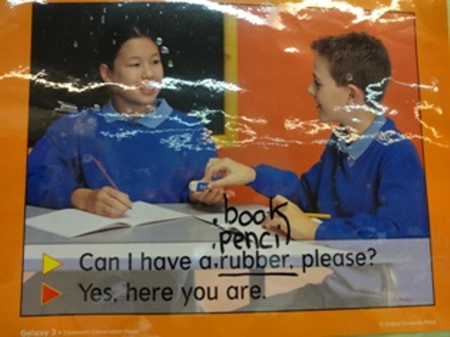 All together we decorate our English class with drawings, words and sentences. We talk about friendship, peace and love.