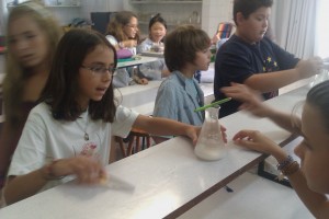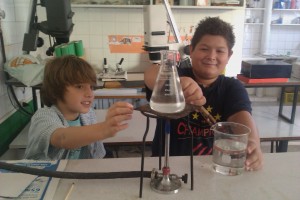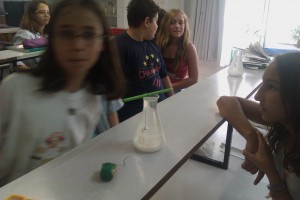 Avui hem tornat al laboratori. Hem descobert com pesar la sal a la balança digital, com mesura l’aigua amb la proveta…