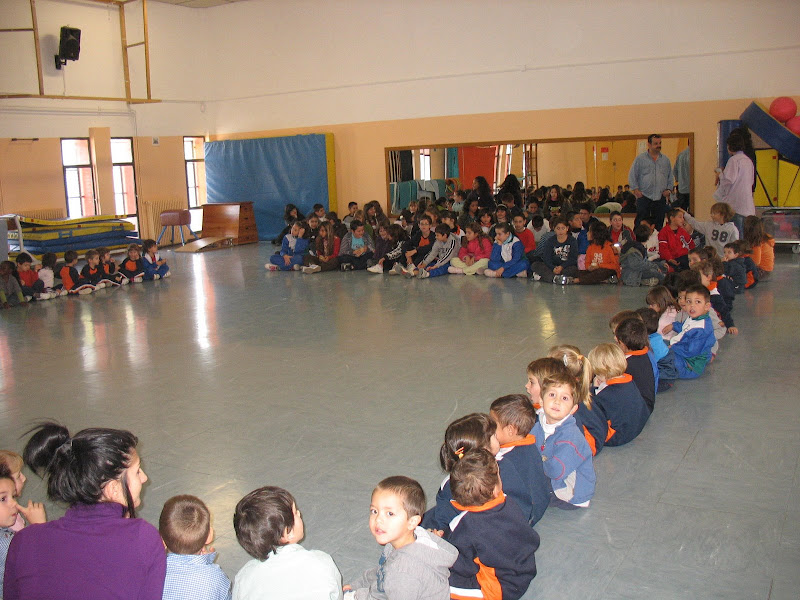 Després ens vam reunir tot el col·legi a la pista del futbol i ens vam posar a assajar el ball de carnestoltes.
