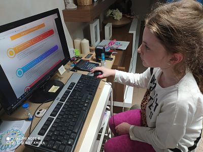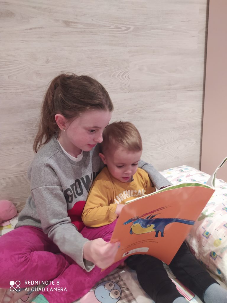 L’Alma està aprofitant aquests dies per a fer moltes activitats i una mica de llengua amb l’ordinador. També li explica contes al seu germà. Fantàstic, Alma!