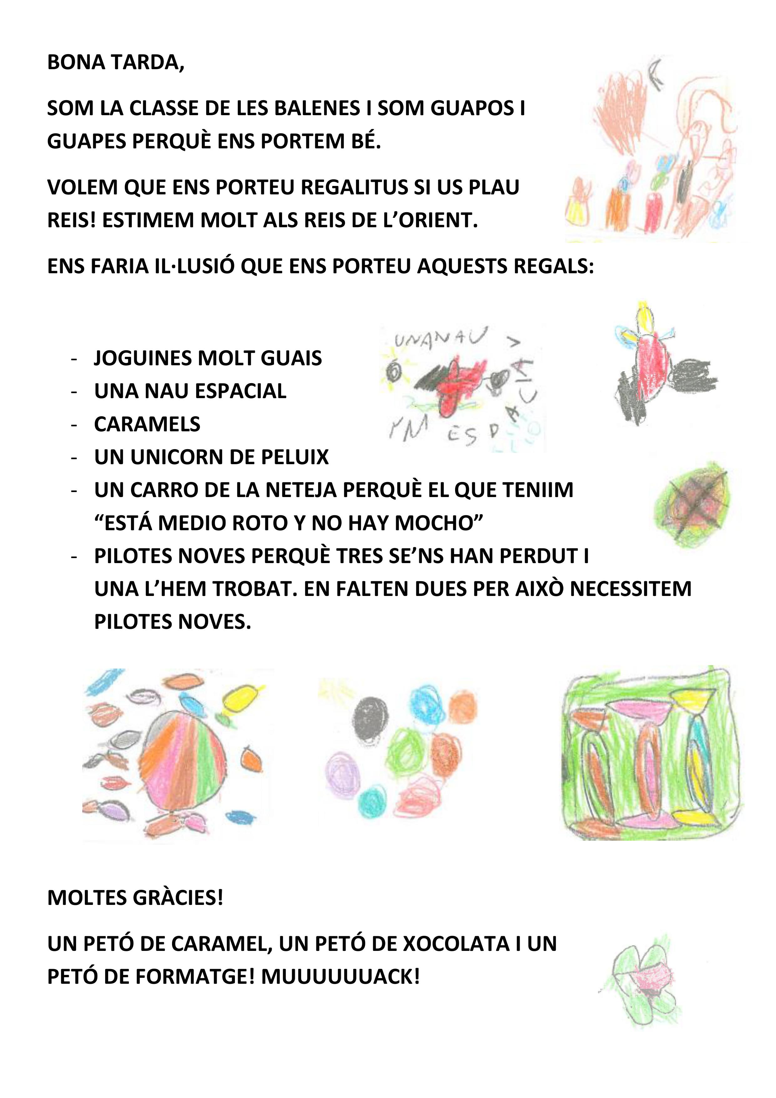 Aquí us la deixem perquè li pogueu fer un cop d’ull. Creieu que els agradarà la nostra carta? 🙂