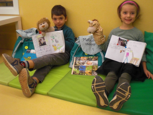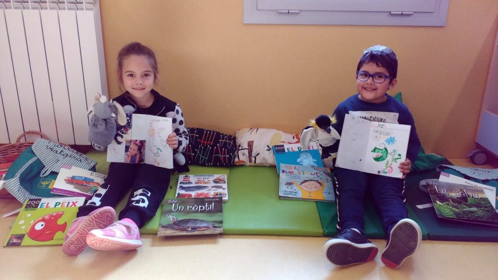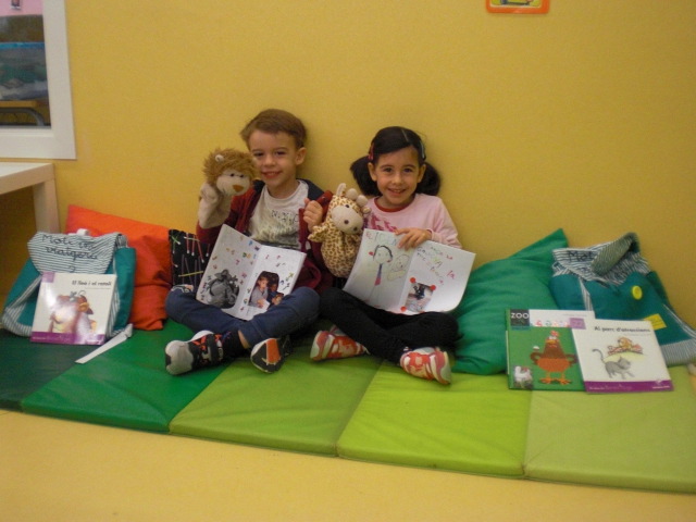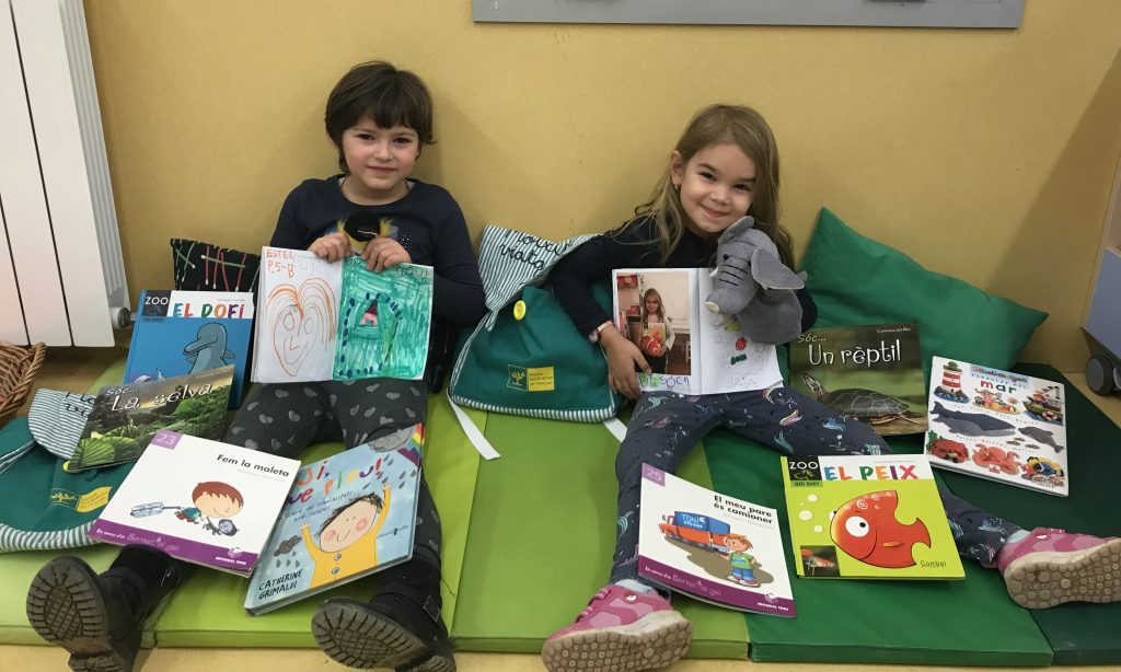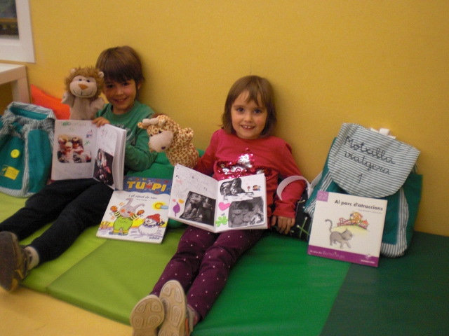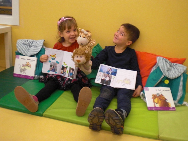 Aquesta setmana la girafa Carlota i el lleó “Peluxín” han estat a casa de la Maya i el Víctor, jugant i llegint els contes de la motxilla viatgera.