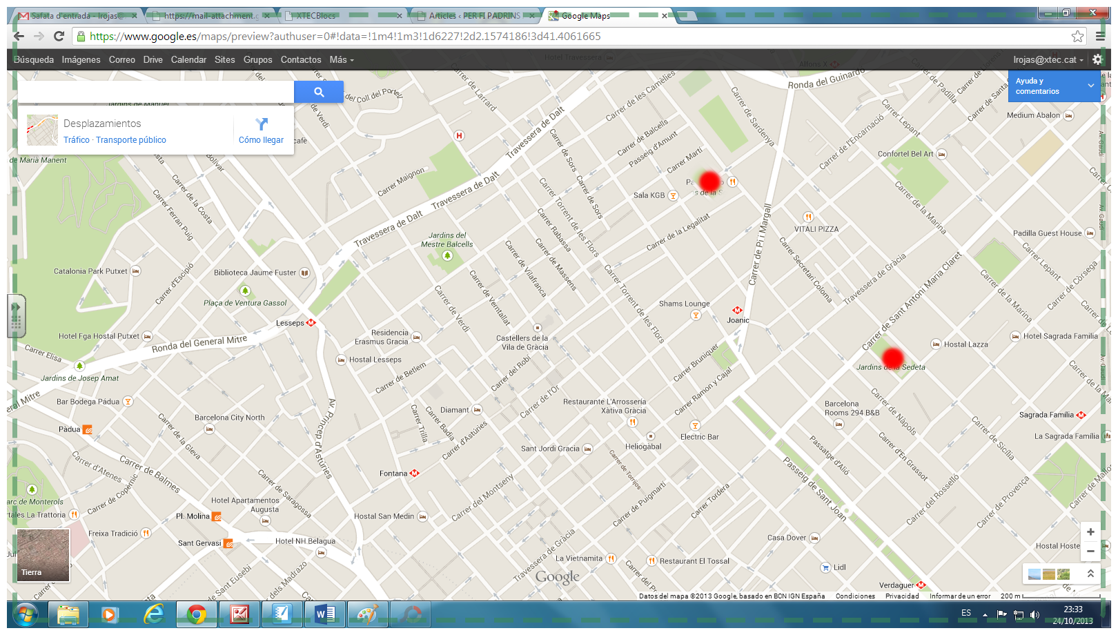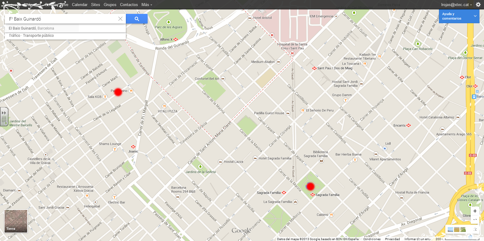 El camí pot ser de l’escola als Jardins de la Sedeta o de la Sagrada Família a l’escola, o viceversa: dels jardins a l’escola o de l’escola a la Sagrada Família.