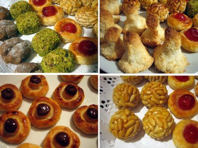S’agafa una porció de massa, i s’hi barreja la ratlladura de llimona i/o taronja. Es formen petites boles i s’arrebossen amb sucre. Es col·loquen al damunt d’una safata sobre paper de forn i es decoren amb un tros de pela de taronja i/o llimona confitada al damunt. S’enfornen a 200ºC fins que quedin rossos (uns 5 minuts).