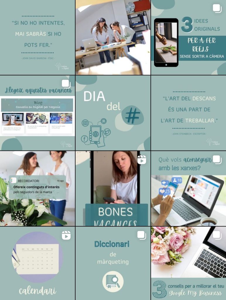 Així és com ens ha anat quedant el nostre feed al nostre perfil d’Instagram. Com es pot veure hi ha molta variació de publicacions, imatges, lletres, dades, etc. La varietat és el que fa que un compte sigui més atractiu i capti l’atenció del públic.
