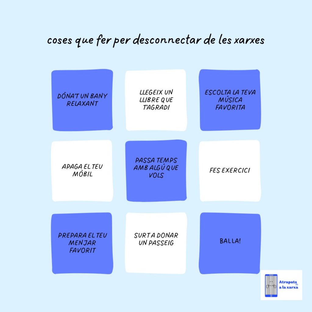 Aquest és un exemple en el qual vam posar “Coses a fer per desconnectar de les xarxes”, en el qual proposem moltes idees d’activitats i nous hobbies que pot ser si la gent els prova de fer els agrada i tenen una activitat nova a fer en comptes d’estar amb les xarxes socials molta estona.