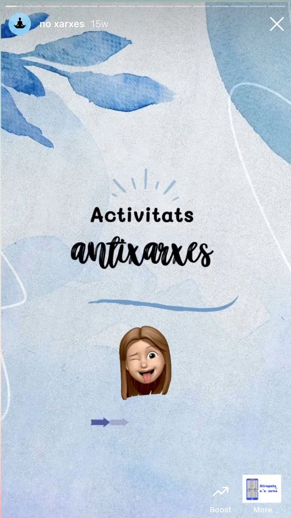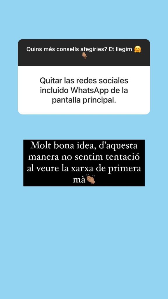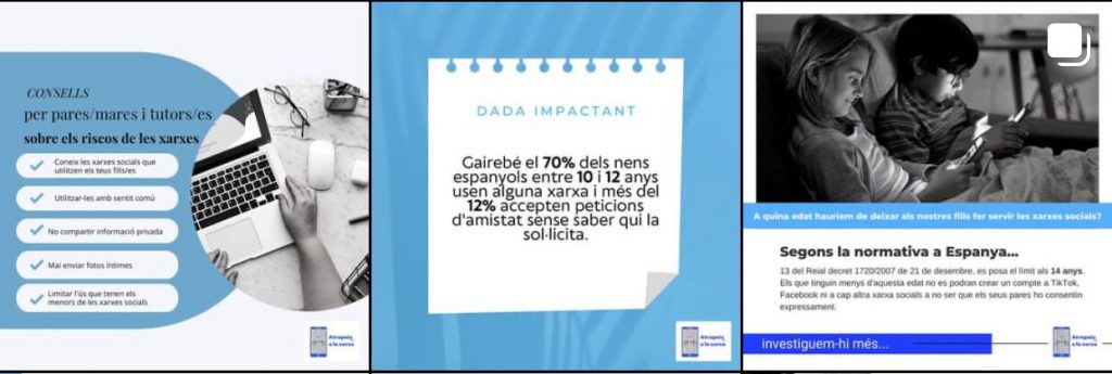 En aquest tipus de publicacions donem sobretot moltes idees d’activitats a fer per no estar enganxats a les xarxes socials, també consells als pares i mares per fer que els seus fills i filles utilitzin menys les xarxes socials i que tinguin més compte a l’hora d’usar-les, a més hem publicat com evitar desconcentrar-nos a l’hora d’estudiar per les xarxes socials i més. D’aquests tipus de posts hem fet i publicat bastants, ja que considerem que com a bona campanya és molt important donar informació, però també informació que puguin posar a la pràctica i que sigui d’ajuda.