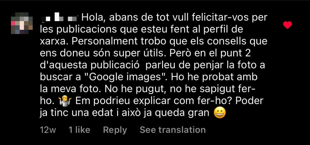 Comentari en post de “Com detectar un perill fals a Instagram?”