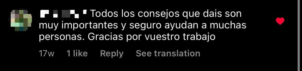 Com es pot veure hem rebut molts bons comentaris i moltes reflexions per part d’alguns dels nostres seguidors i seguidores. No només ens han agraït la informació que donem sinó que també ens han deixat el que pensen sobre alguns temes tractats en les publicacions, el que pensen de les publicacions en si mateixes i molt més. Considerem que aquests són comentaris plenament sincers i ens hem adonat que gràcies al nostre compte d’Instagram hem ajudat a molta gent a conèixer el món i tot allò que hi ha darrere les xarxes socials.