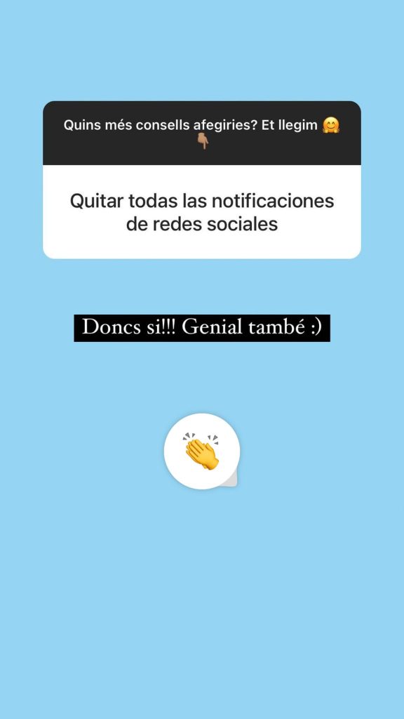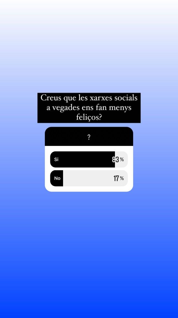 Moltes vegades a les històries d’Instagram hem fet preguntes a les històries en relació amb posts que hem publicat per saber una mica que pensava la gent que ens segueix. Aquí hi ha exemples d’enquestes que hem fet i les respostes dels nostres seguidors i seguidores.