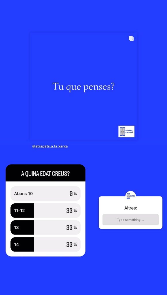 Vam publicar aquest post sobre el qual es diu de: A quina edat hauríem de deixar als nostres fills i filles fer servir les xarxes socials? A més aquesta publicació ens la va recomanar fer un seguidor nostre quan vam fer aquesta pregunta a les històries el mateix dia que vam començar amb la campanya: