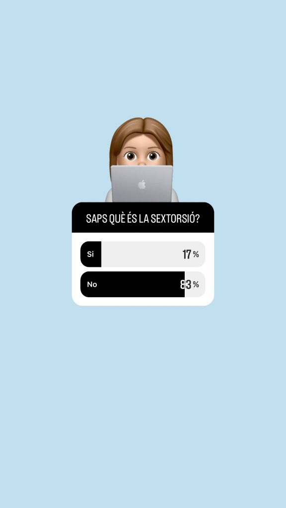 Amb aquesta pregunta volíem saber si la gent està informada sobre aquest tipus de temes relacionats amb les xarxes socials o si no tants. Veient que només 1 persona va votar que si podem dir que en general la gent no està molt informada d’aquest tema que és la sextorsió (extorsió sexual). Per tant, vam fer una explicació sobre el que és i la vam publicar.