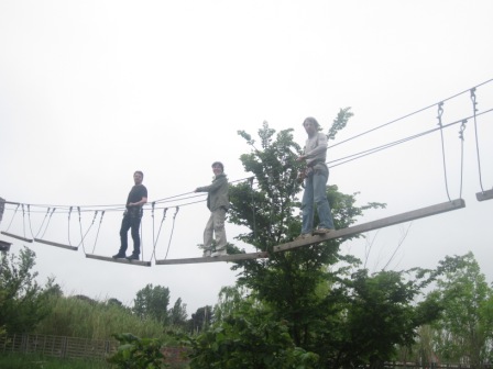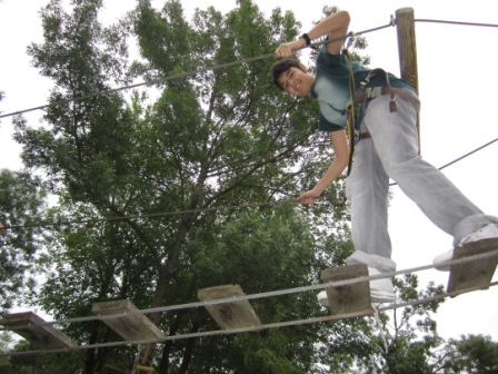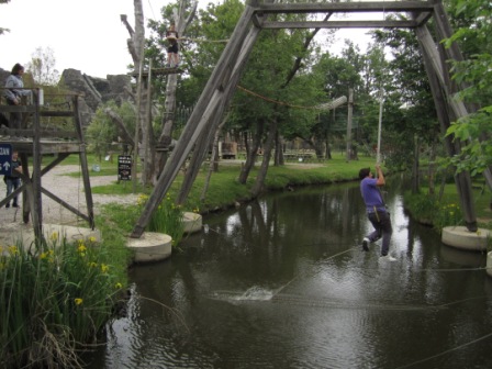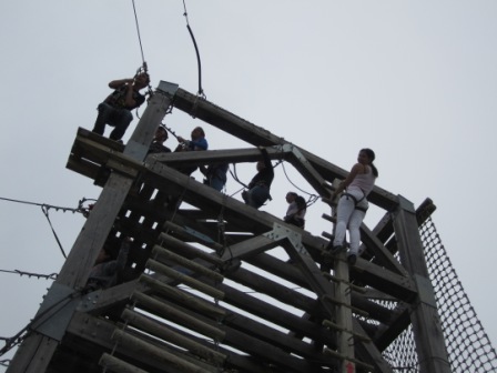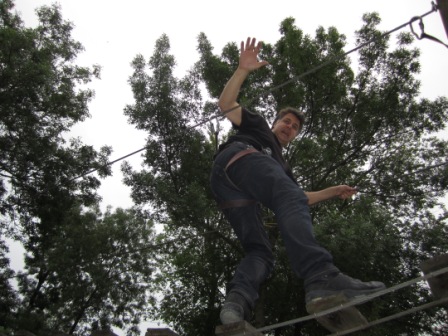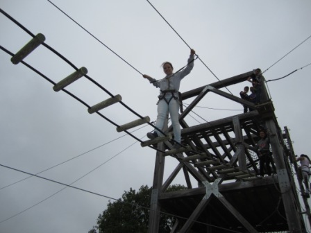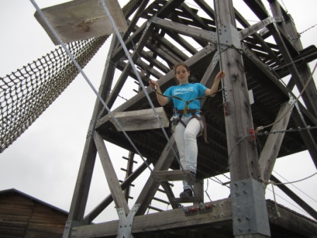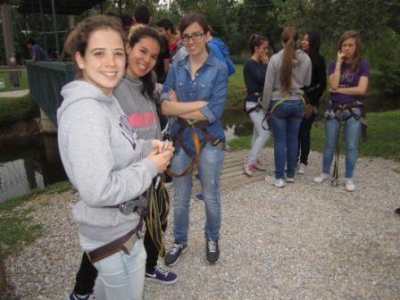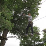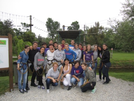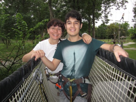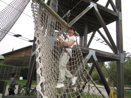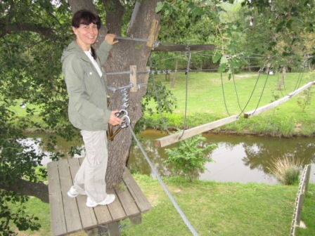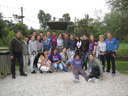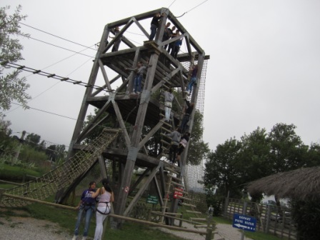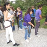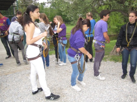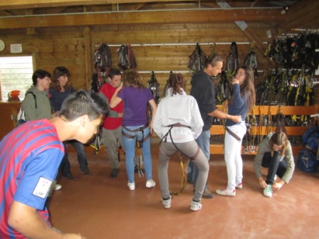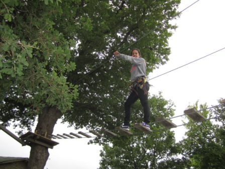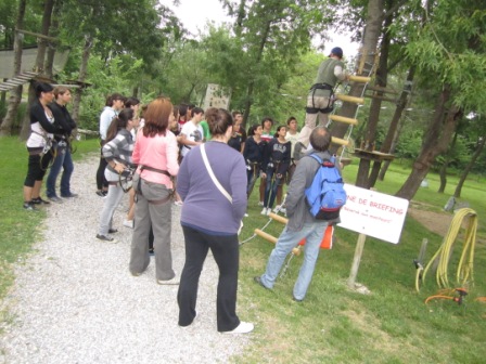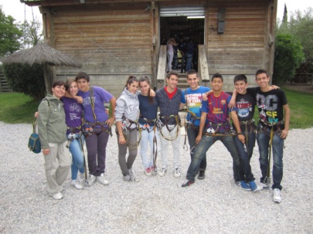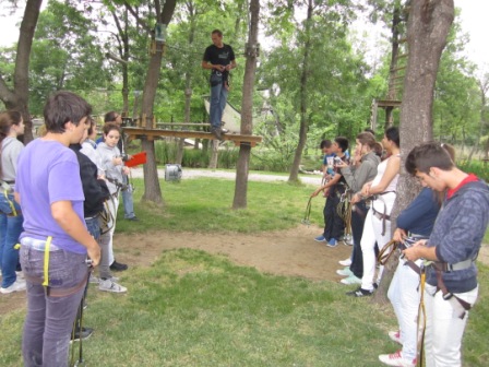 A les 9 ens acomiadem dels nostres amics francesos, una mica tristos però amb ganes que ens visitin a Sabadell. En companyia dels companys de teatre de l’Escola Cor de Maria de Sant Celoni ens dirigim a Argelers per gaudir d’unes activitats d’aventura penjats dels arbres amb tirolines, ponts de mico i salts de “Tarzan”. Quina emoció i quina por!