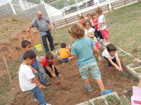 El Ton ens va portar escaroles, cols…. Ara ens toca regar l´hort, treure les males herbes i cuidar-lo molt, perquè creixin les plantes i ho puguem donar als conills, quan en tinguem.