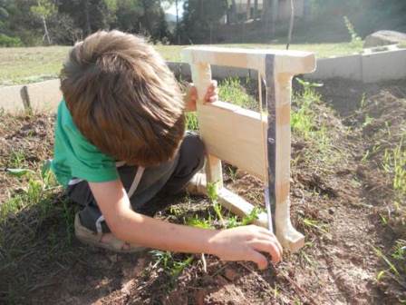 Amb un petit grup de nens hem mesurat l’hort per poder-hi posar la tanca. Ara estem pensant com la farem.