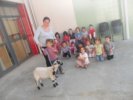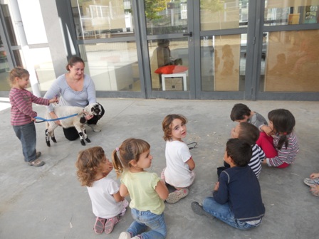 La Núria, la mare de l’Aitana, ens ha portat a l’escola la seva ovella. Ens ha agradat molt de poder-la veure-la. És molt fineta. Ens va explicar que quan era més petita mamava de la teta de la seva mare i després quan la van tenir a casa li donaven biberons de llet. Ara menja molta herba perquè ja és més gran.