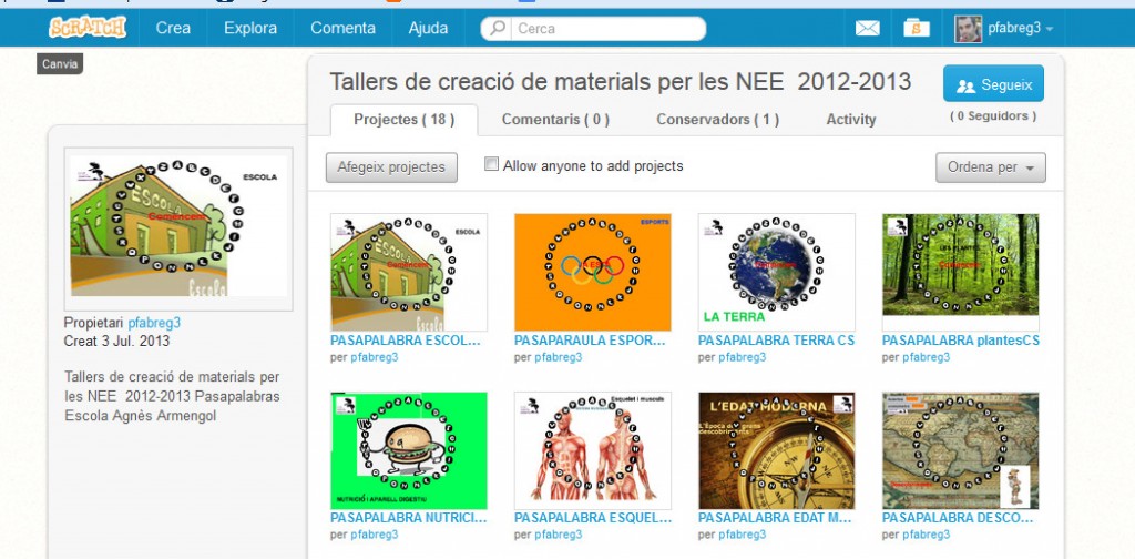 El dijous 27 de juny es va realitzar Tallers de creació de materials per les NEE en diferents escoles de Catalunya , en la meva Escola Agnès Armengol van poder elaborar  un material conjuntament amb mestres del centre i d’altres escoles  sobre pasapalabras i memòris , sota el nom