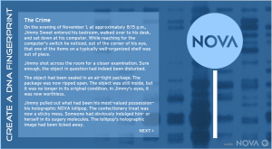 The crime Your task, as NOVA lab’s chiefs technician, is to create a DNA Fingerprint from the saliva left on the lollipop. You must then use the fingerprint to single out the culprit of this crime.