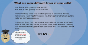 Stem cells Stem cells play many important roles in our bodies from embryonic development through adulthood.