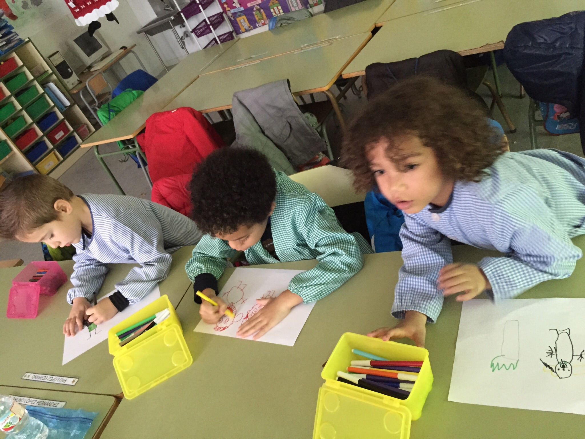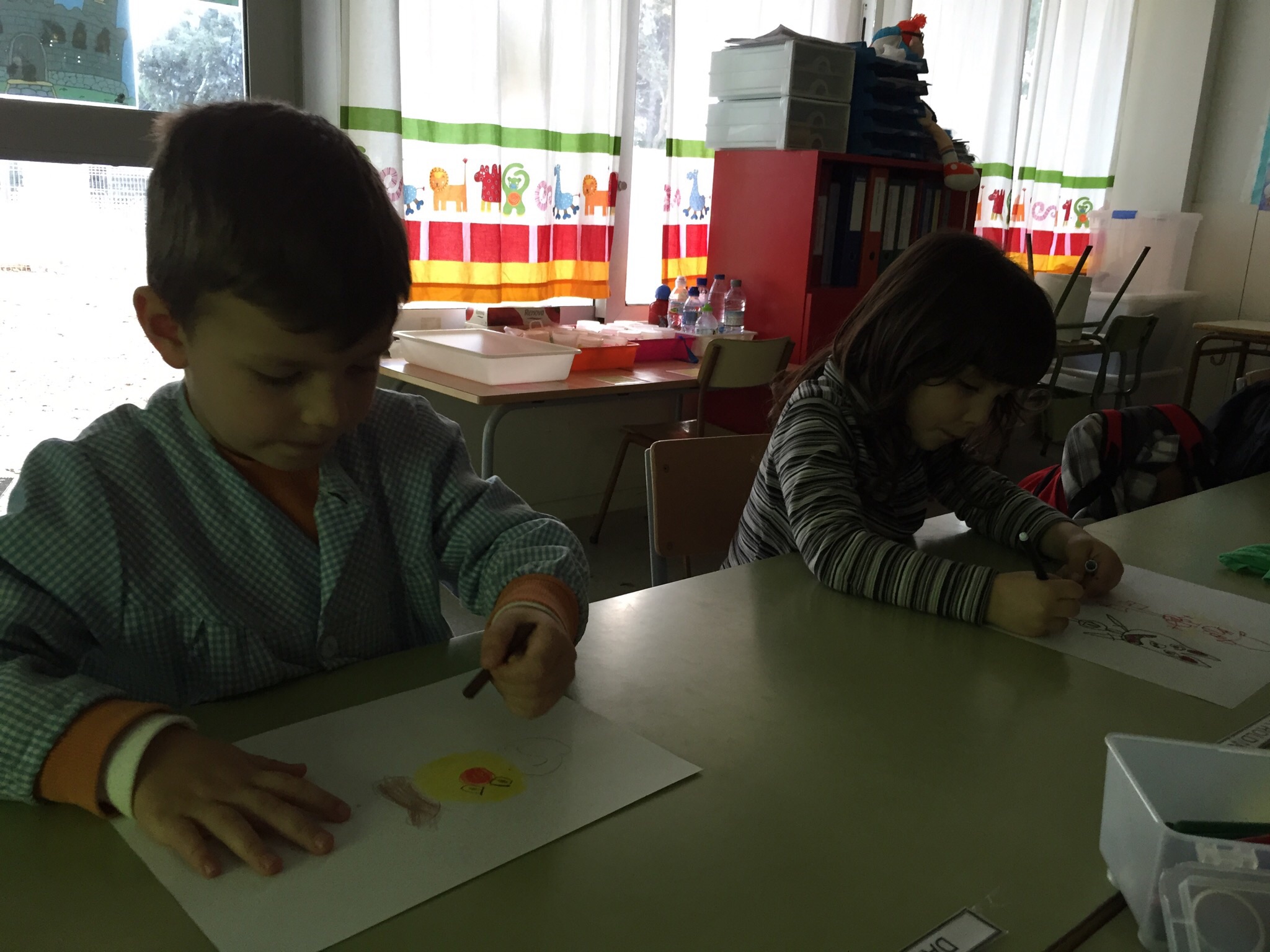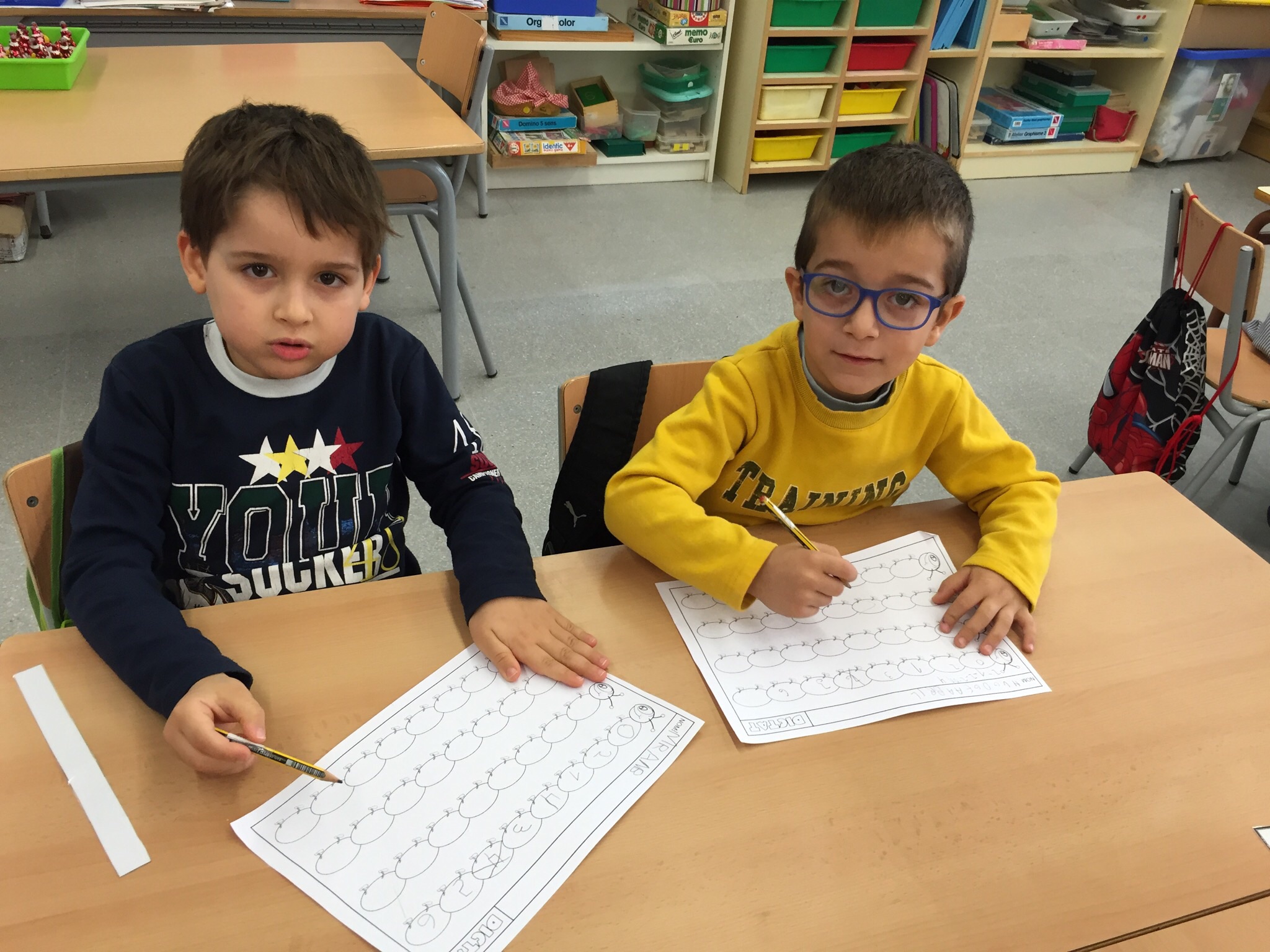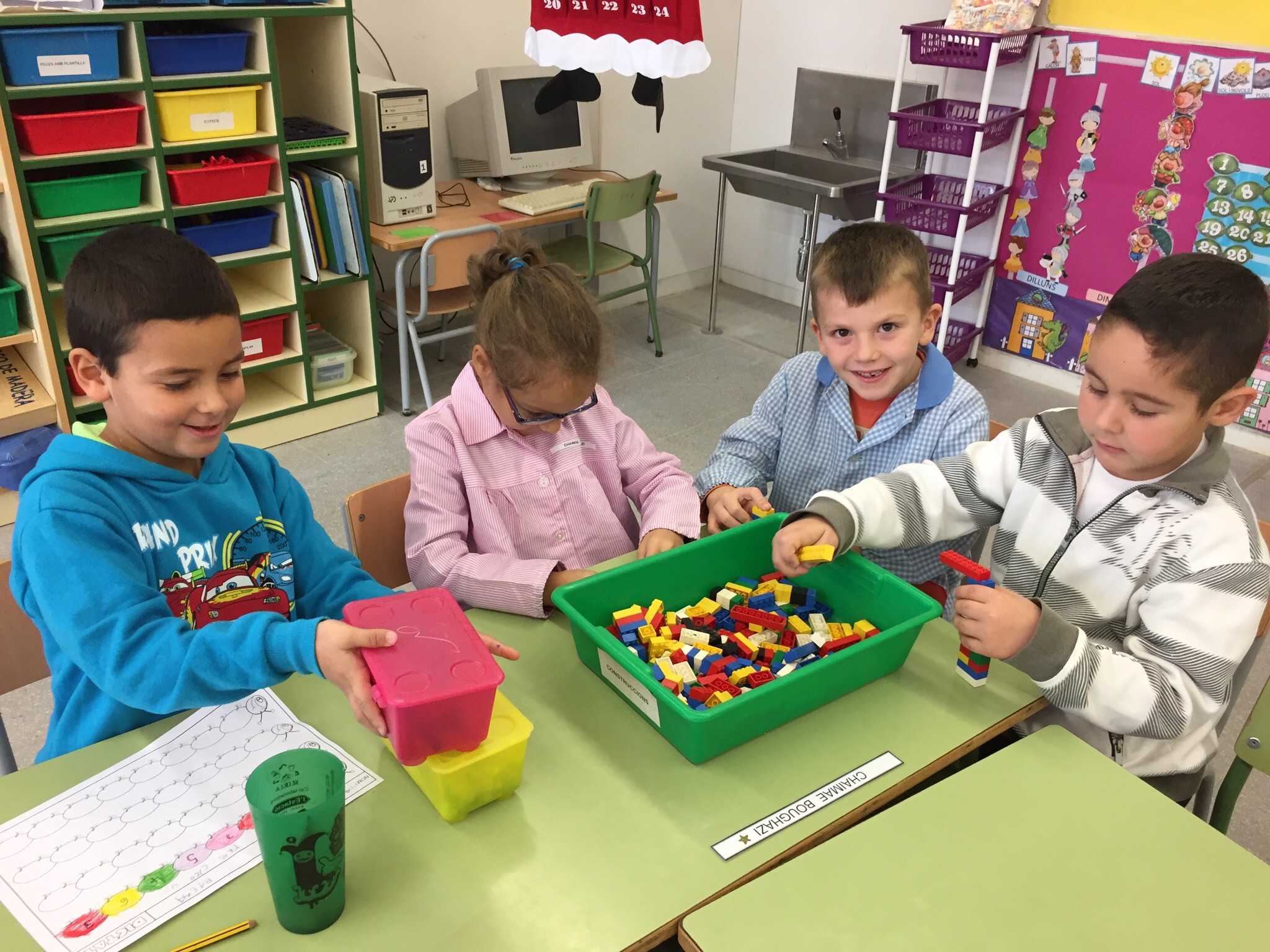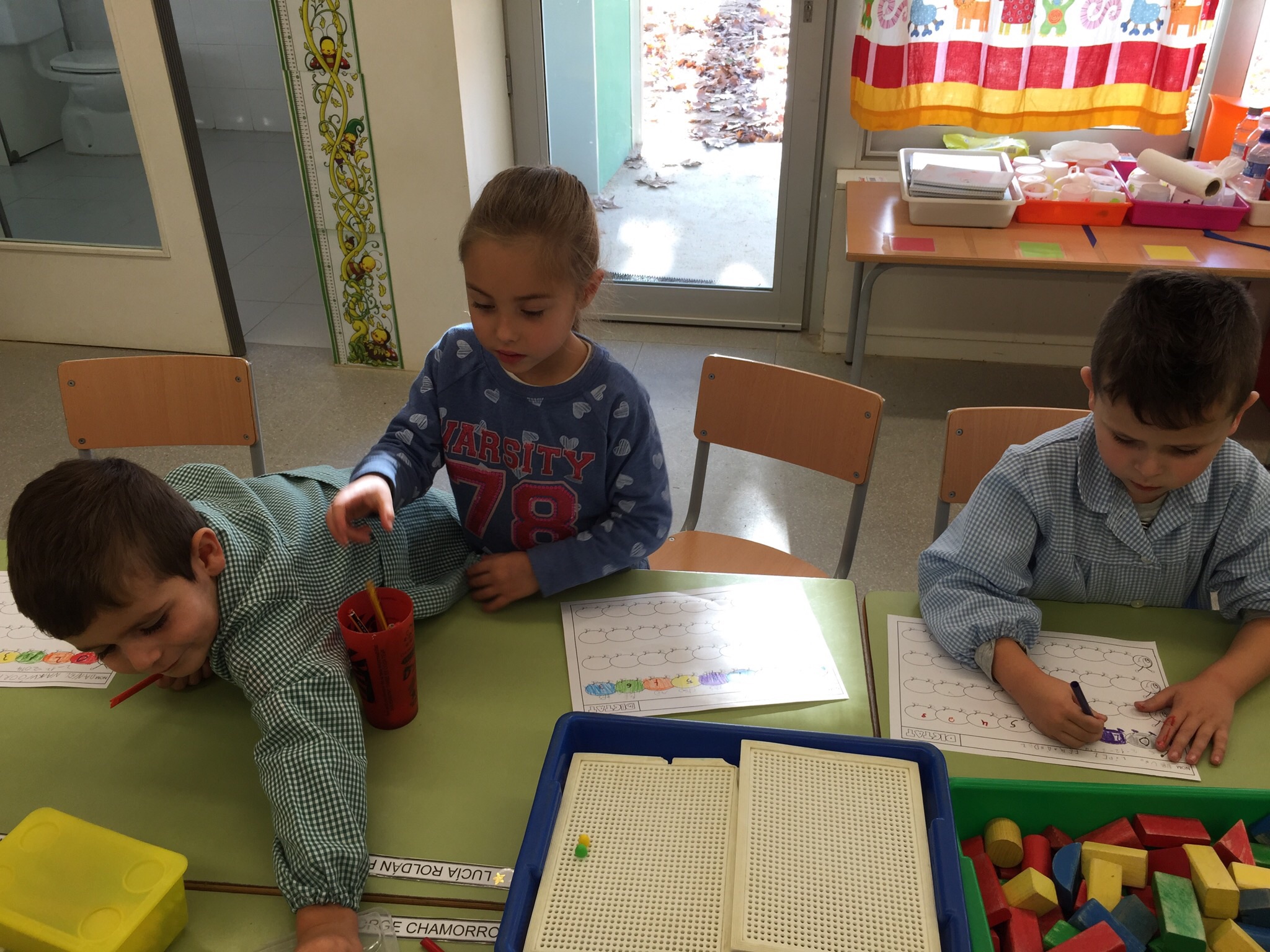 Ens encanten les matemàtiques! I sovint treballem la quantitat, la numeració, les sèries i el càlcul amb material divers. A l’aula tenim “Pius”, peces d’enfilar, fustetes… Després ens és més fàcil fer la feina en una fitxa.