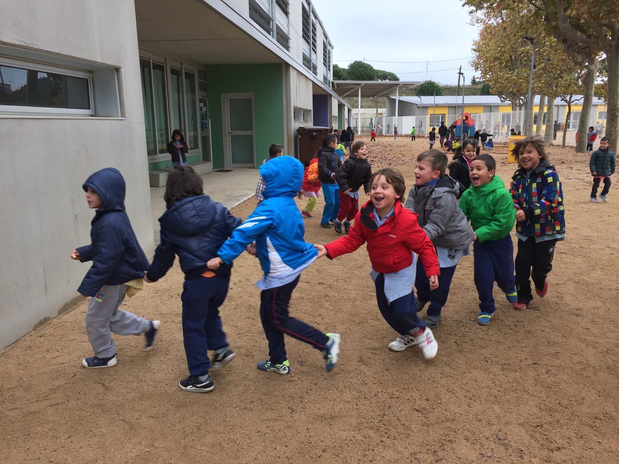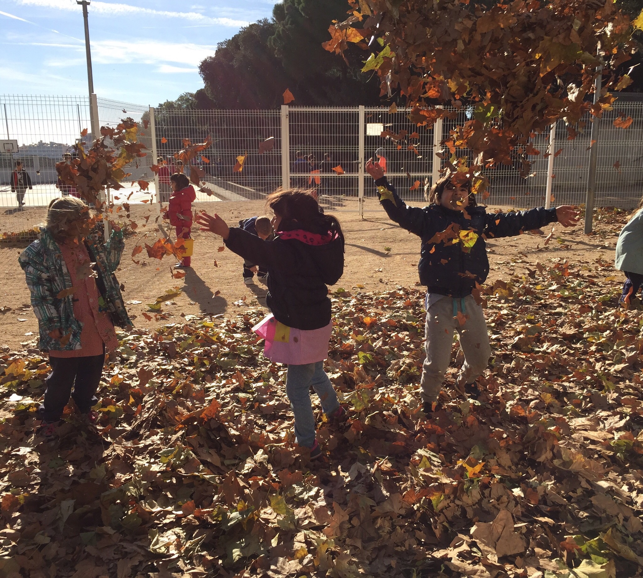 Aquests dies de vent ens ha deixat el pati ple de fulles… I nosaltres juguem i ens ho passem genial a l’hora de l’esbarjo!
