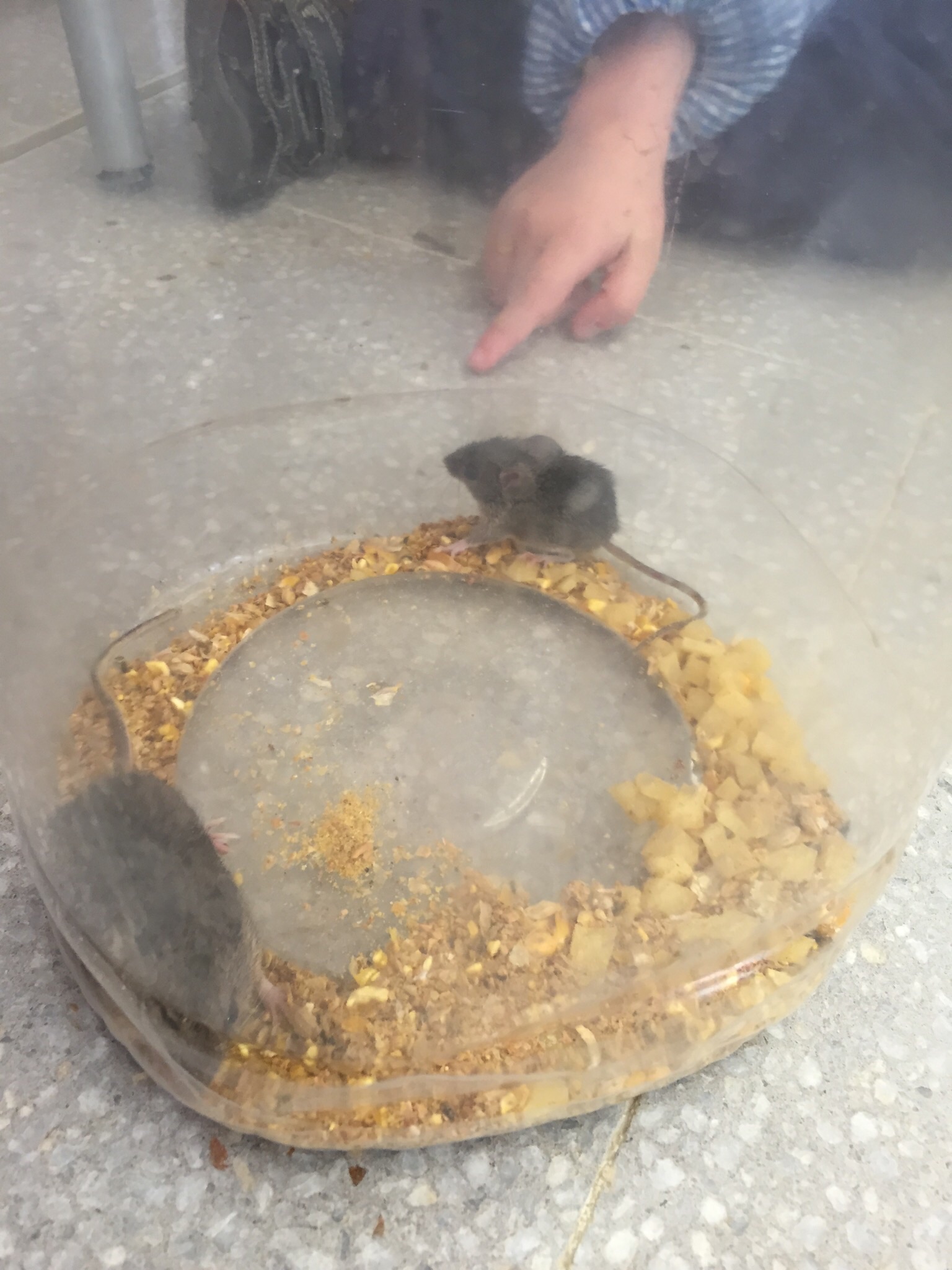 L’Emma, de la classe dels pirates ens va portar un parell de ratolins de camp. No els vam tocar, però sí que els vam veure de ben aprop. Eren molt simpàtics 🙂