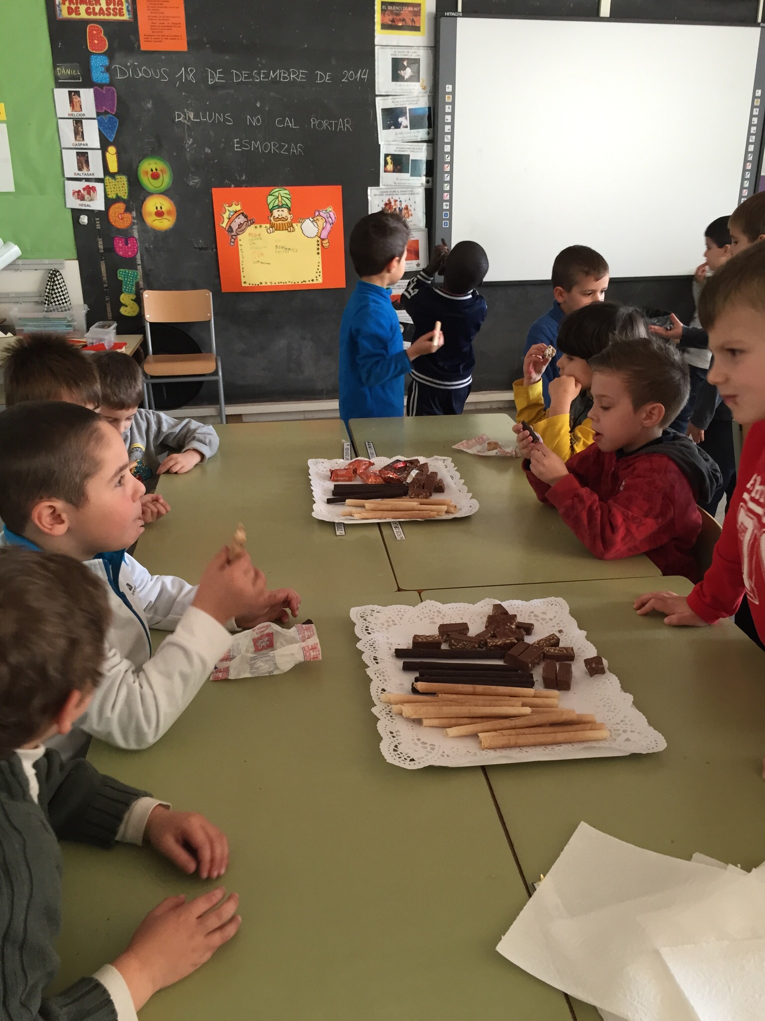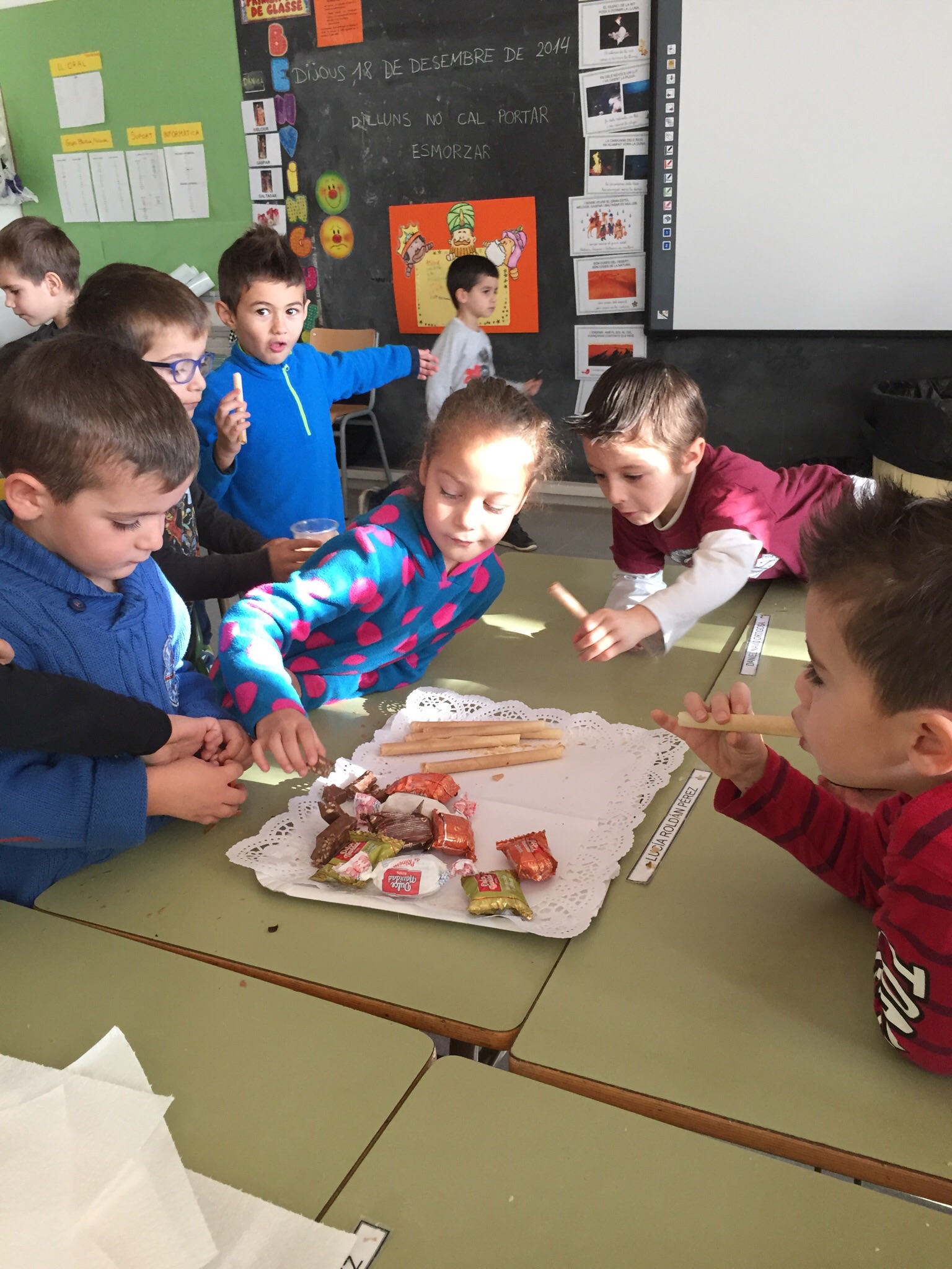 Avui a l’aula hem fet un petit tastet amb productes típics d’aquestes festes: polvorons, turró de xocolata, neules… Tot boníssim!