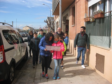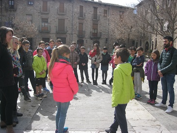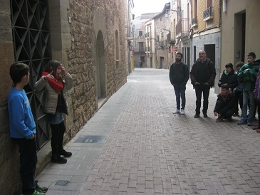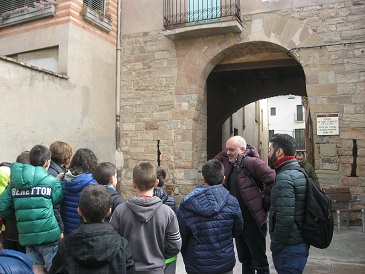 Acompanyem al Daniel Pinyol i el Giacomo a fer una visita per Santpedor. Els hi ensenyem les portes de les muralles, l’església, el palau reial, la plaça de l’ajuntament, la casa del notari… És a dir, tot el que queda de l’edat mitjana en el nostre poble.