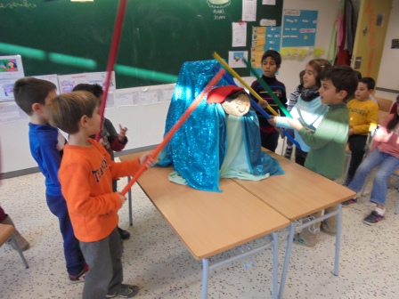 Aqui també podeu veure com vam cantar tota l’escola junta amb els mestres que feien de músics i l’actuació de cicle inicial.
