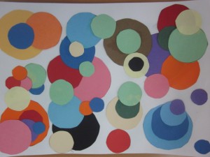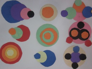 Amb taps de diferents mides hem dibuixat i retallat cercles de diferents colors. Després cada nen ha fet la seva composició lliure.