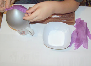 En esta manualidad son suficientes tres capas de papel de seda encoladas.