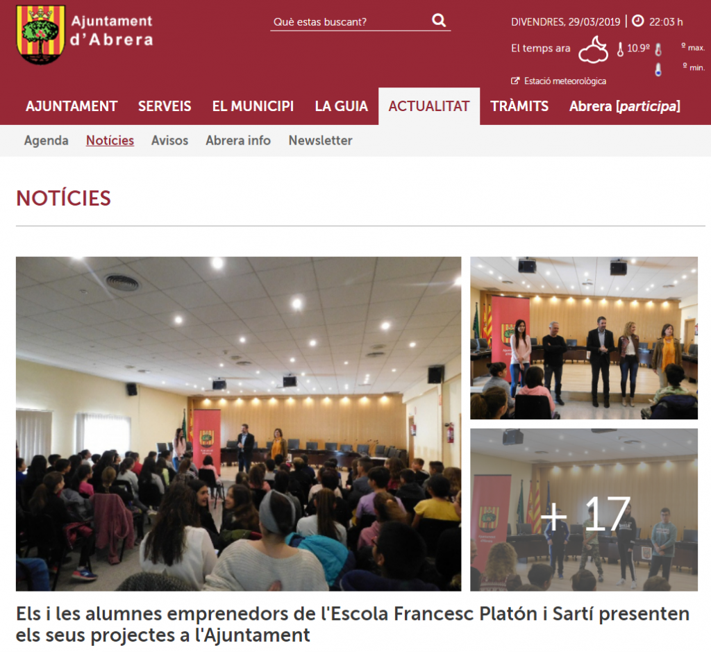 Avui, els i les alumnes de 5è, han recollit el NIF de les seves cooperatives i han presentat els productes a l’Ajuntament. Han estat rebuts per l’alcalde, Jesús Naharro, la regidora de Promoció Econòmica, Mònica Torre-Marín, el regidor d’Ensenyament, Miquel Tomàs i les tècniques de Promoció Econòmica, Tamara Mendieta i la d’Educació Maria Edo.