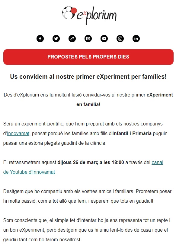 Bon dia. Us proposem una activitat per fer a casa amb els vostres fills i filles, per saber més, feu clic a la imatge.