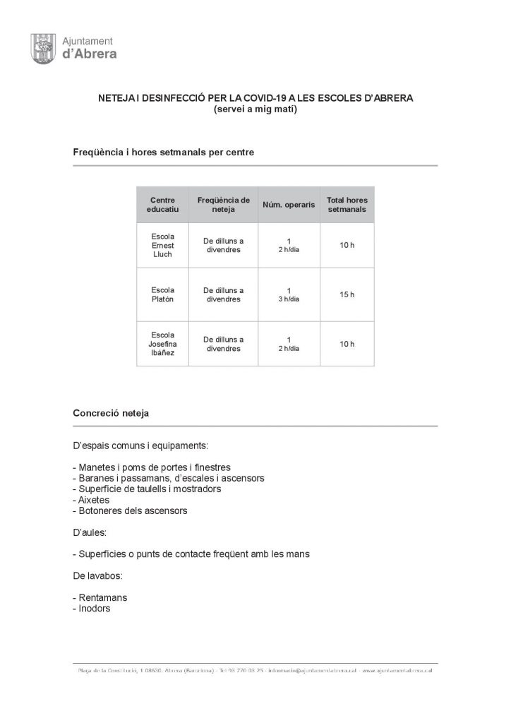 Neteja i desinfecció del centre a mig matí